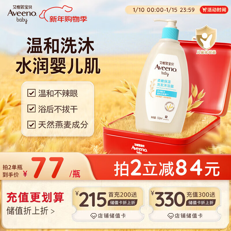 艾惟诺(Aveeno)艾维诺儿童洗发水沐浴露二合一婴儿洗沐二合一护肤0-6-12岁 532ml