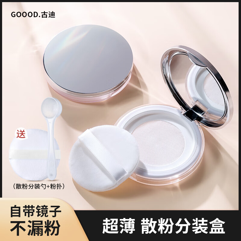 古迪黑胡椒超薄散粉分装盒小巧便携不漏大容量迷你小号空盒弹力网 超薄镜面散粉盒 1件
