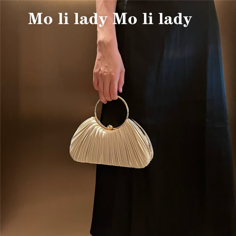 名媛感皱褶包包2024新款圆环手提包晚宴旗袍包礼服手拿 圆环皱褶包