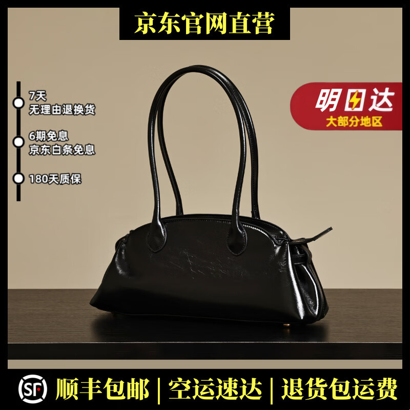 MOOLENA轻奢品牌真皮包包女包腋下包晚宴单肩包女 黑色