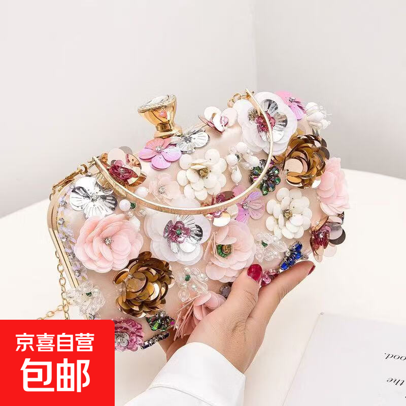 现货批发新款晚宴手工珠绣花朵宴会包派对女士手拿新娘婚礼包