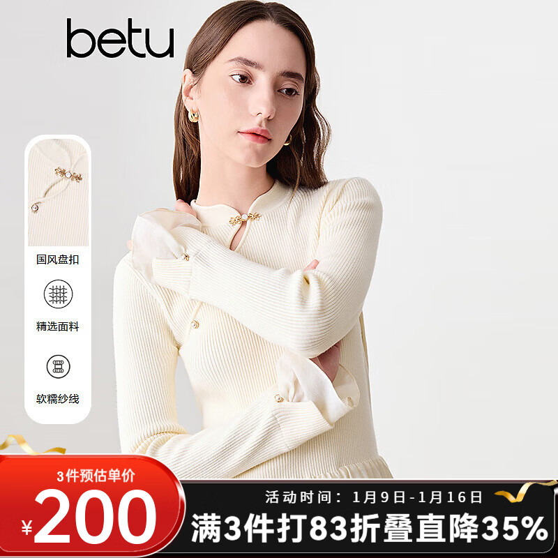 百图betu女装冬季新款连衣裙新中式盘扣拼接设计裙子女2410T95 浅杏色 L