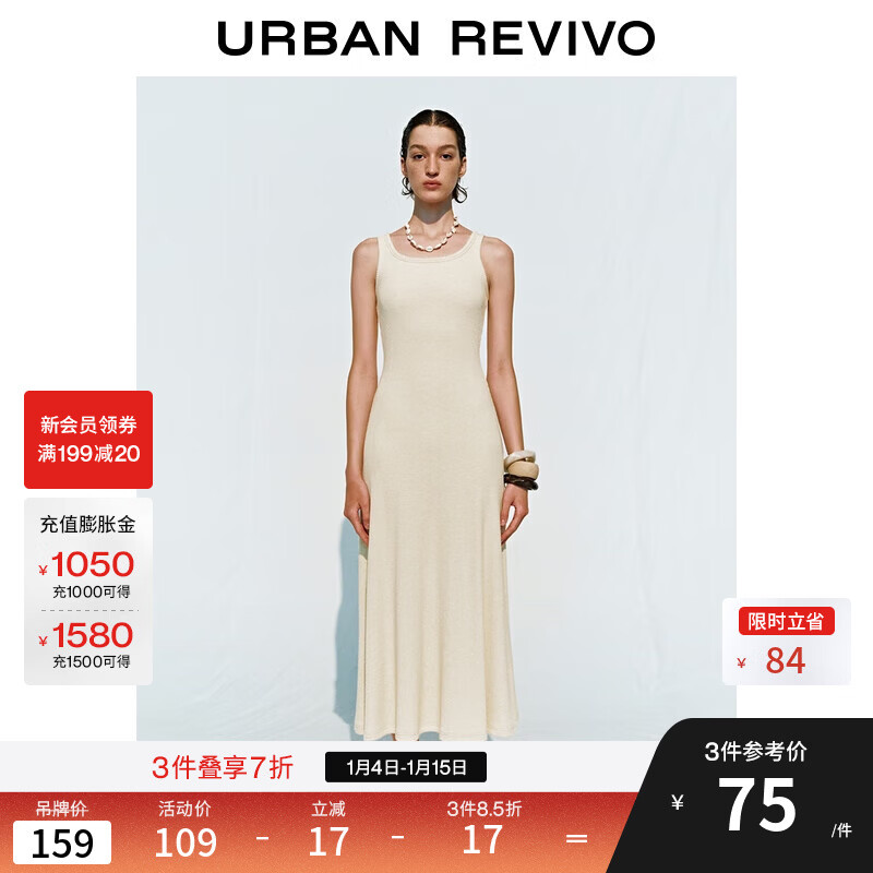 UR2025夏季新款女装休闲简约百搭无袖长裙连衣裙UWB750002 裸杏色 XS