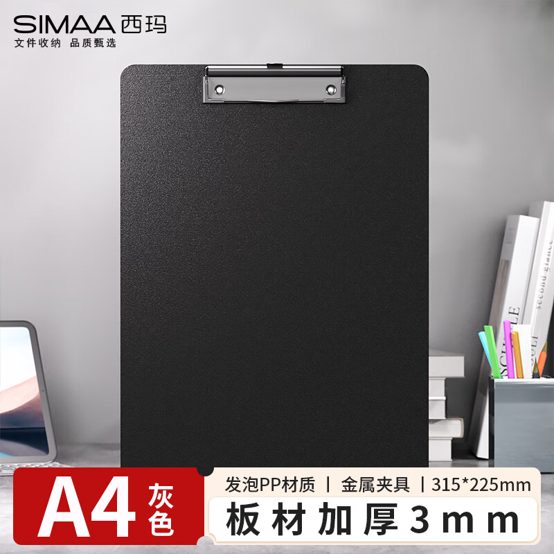 西玛(SIMAA)A4加厚书写文件夹板夹 书写夹板金属强力夹塑料文夹板菜单画板夹 多功能写字垫板 7500 灰色