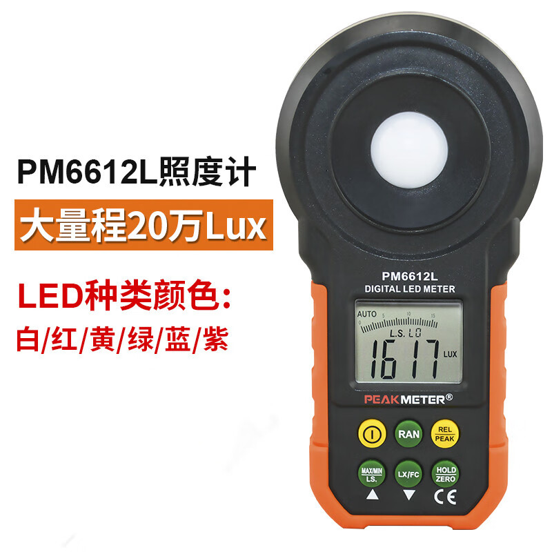 山头林村PM6612L照度计数字高精度光照仪流明光度亮度计LED彩灯亮度测试仪 PM6612L可测LED彩灯0点5秒采样