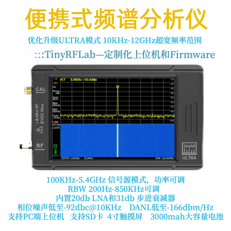 山头林村TinySAULTRA频谱分析仪10K12GHzEMCWiFi蓝牙Lora运营商TinySAUltr Ultra