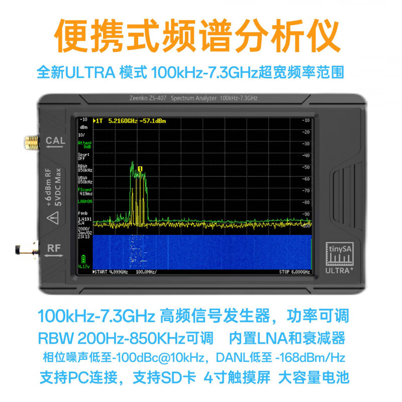 山头林村新款4寸TinySAULTRAPlus手持频谱分析仪100k73GHz检测无人机 ZS-407