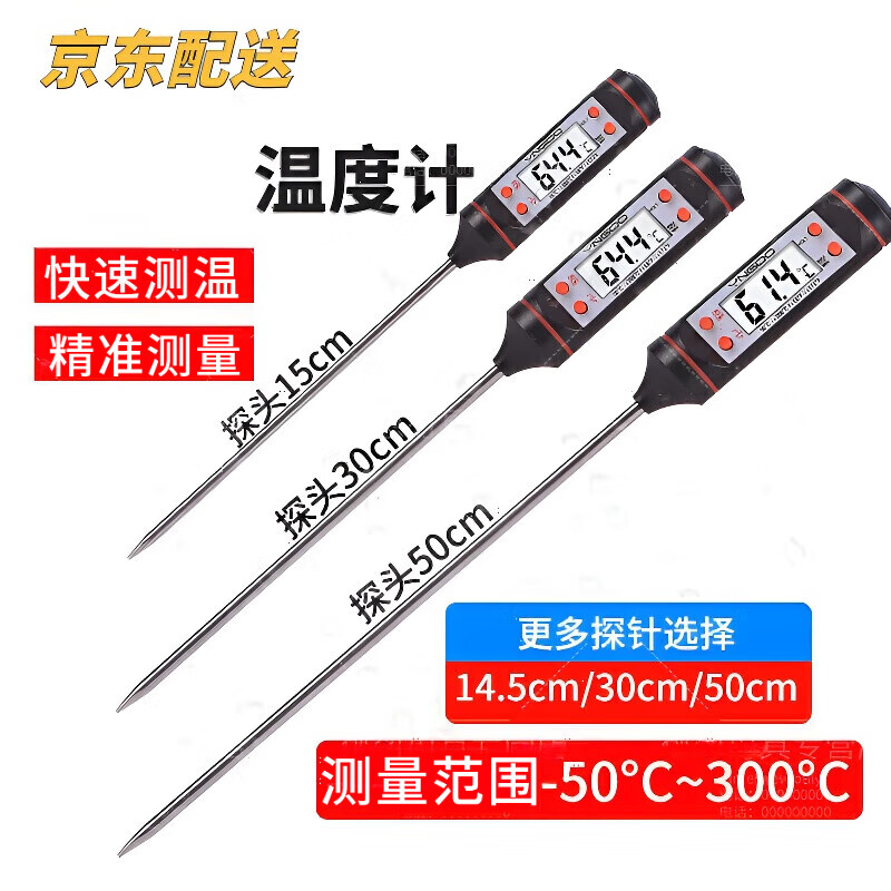 山头林村食品温度计测水温油温商用电子探针数显水温测量计表工业厨房专用 标准黑-探针30cm