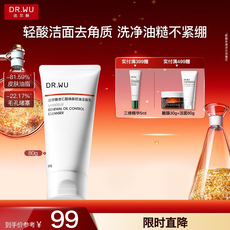 达尔肤(DR.WU)杏仁酸焕肤控油洁面乳80g果酸清洁控油去闭口角质温和氨基酸护肤