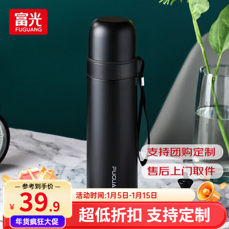 富光 男女士真空不锈钢保温杯 旅行运动水杯子 便携式车载办公茶杯 幽冥黑 500ml