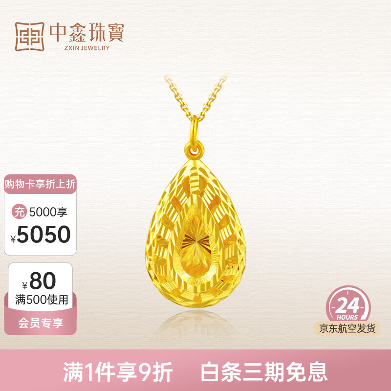 中鑫珠宝【新年礼物】镂空水滴黄金吊坠女简约足金999.9项链坠节日送妈妈 【现货】5.61g