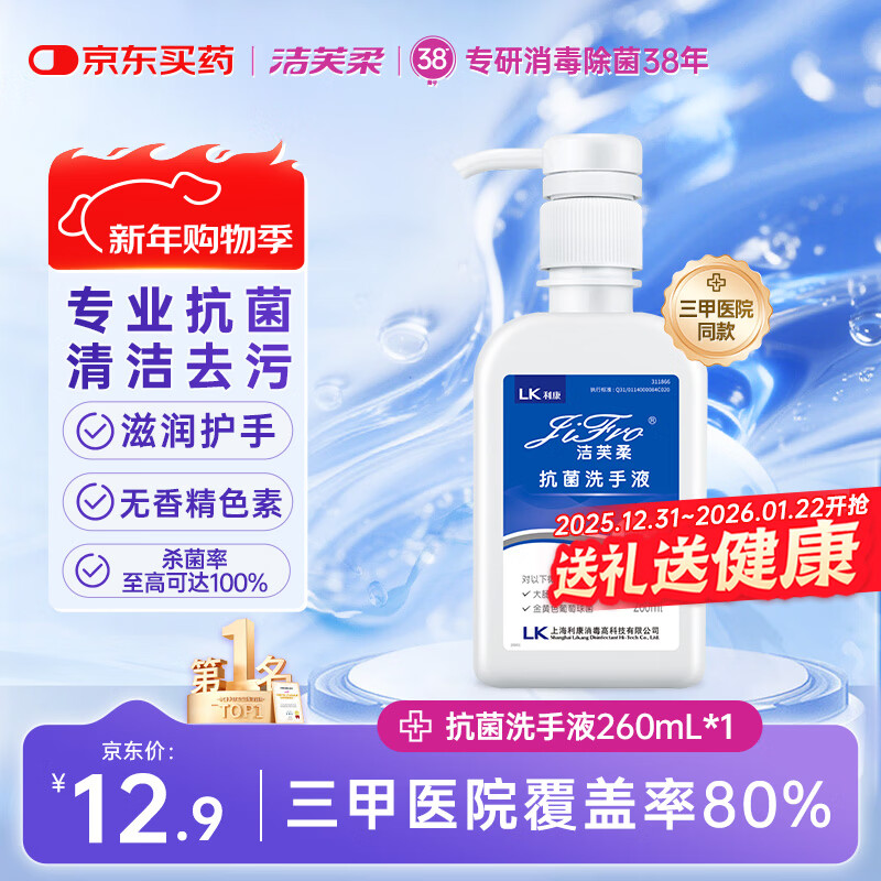 洁芙柔抗菌洗手液260ml水洗泡沫丰富易冲洗泡泡杀菌消毒