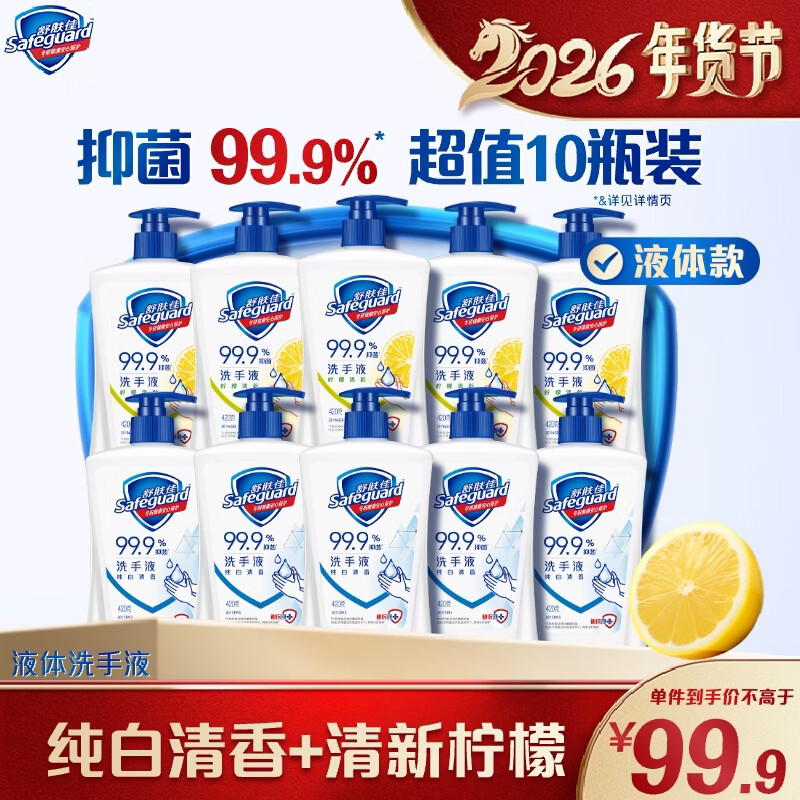 舒肤佳抑菌洗手液 420g*10瓶(纯白*5+柠檬*5) 家庭酒店餐厅整箱装8.4斤