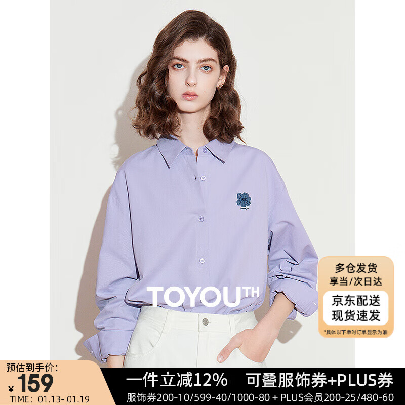 初语纯棉女士衬衫2025秋季新款绣花上衣休闲通勤百搭衬衣 浅紫色 L