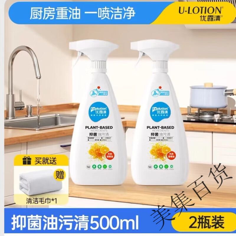 优露清油污清洁剂油烟机厨房去油污强力清洁剂瓷砖地板玻璃清洁 优露清 【500m*2瓶】#率99%