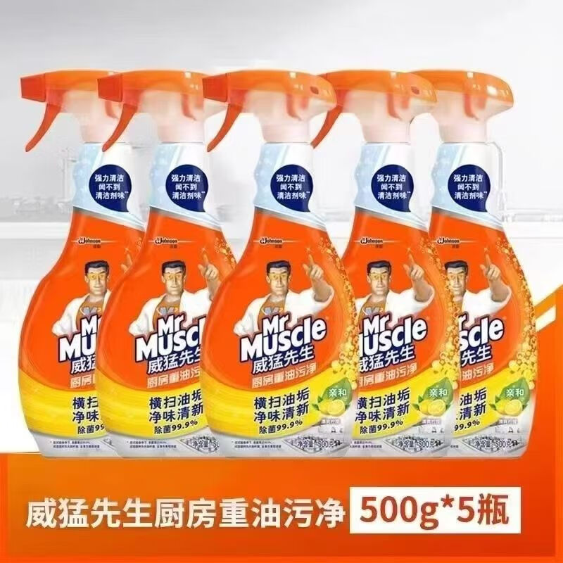威猛先生油污净500g油烟机清洗剂油污清油剂厨房重油污净家用套装 5瓶+5喷头