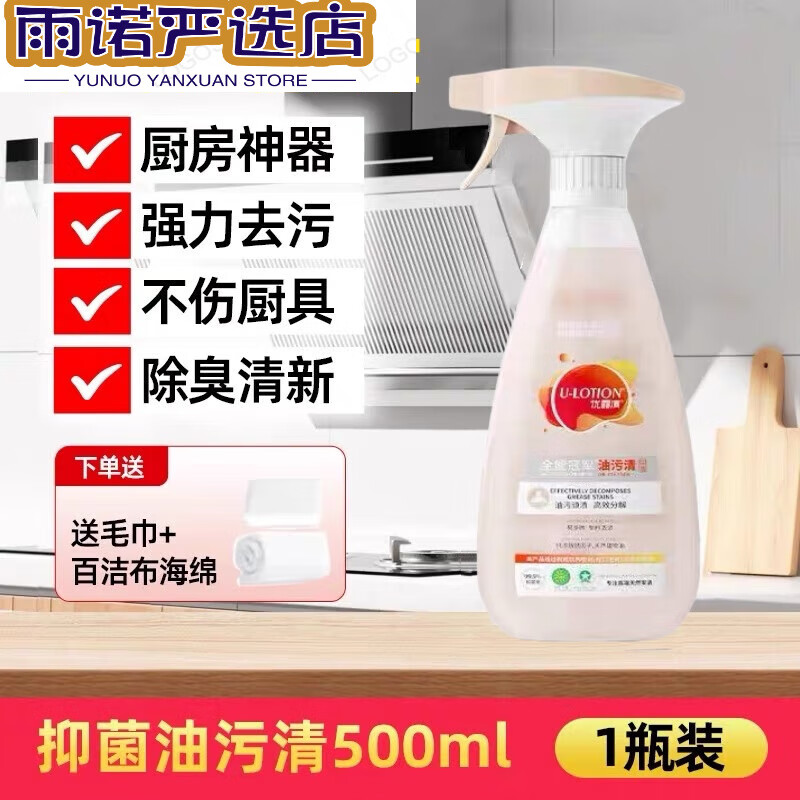优露清油污清油烟机清洗剂厨房强力瓷砖多功能去重油污 500ml1瓶送毛巾+清洁海绵