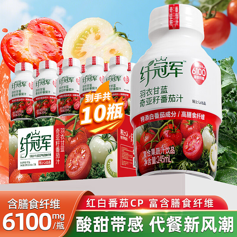 轻上纤冠军羽衣甘蓝奇亚籽纤维酸奶昔饮品复合果蔬汁饮料饱腹代餐 羽衣甘奇亚籽【番茄汁】245ml*10瓶