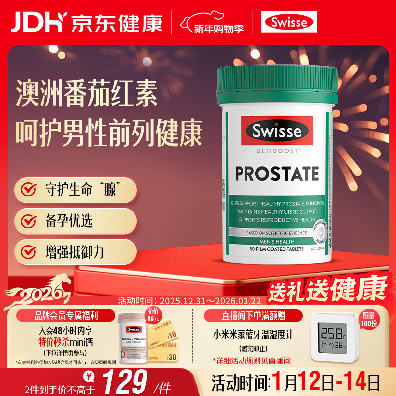 Swisse斯维诗男士锯棕榈番茄红素锌硒维生素D3前列尿道健康备孕50片/瓶