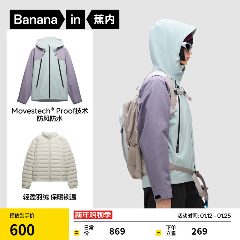 蕉内(Bananain)【赵露思同款】302Proof Pro女士三合一冲锋衣秋冬新款短外套 薄雾紫拼薄纱紫 S