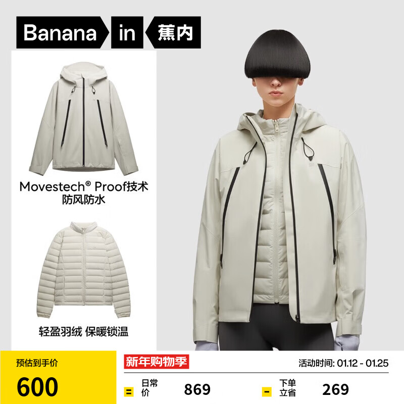 蕉内(Bananain)【赵露思同款】302Proof Pro女士三合一冲锋衣秋冬新款短外套 【赵露思同款】白桦木 S