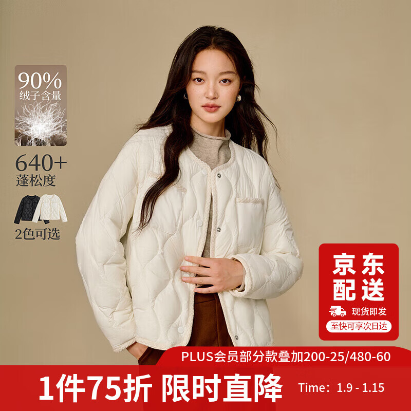茵曼快热纱无胆轻薄羽绒服2025冬女装新款轻薄短保暖外套 暖杏色 M