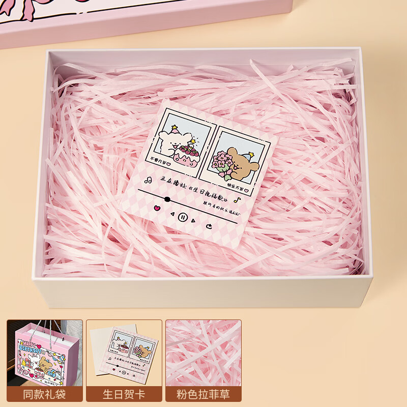 礼美达生日礼物盒礼盒空盒子大号方形可爱围巾礼品盒高级感包装盒送女孩 礼物盒+拉菲草+礼袋 生日1号20*15*7cm