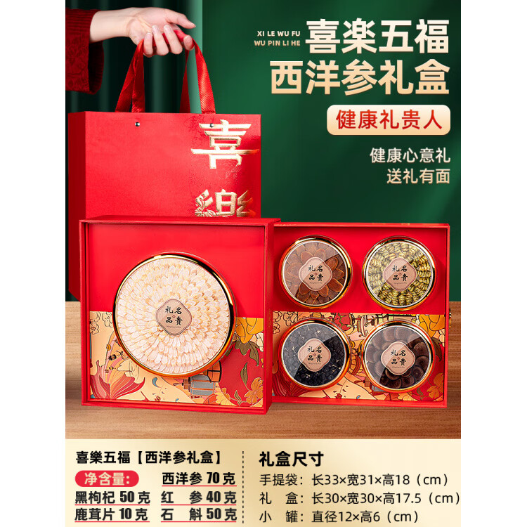 聚和泰西洋参礼盒官方旗舰过节送礼走亲戚送长辈滋补礼品实用礼物 【喜乐五拼】西洋参+黑枸杞+红参+石斛+鹿茸_送礼
