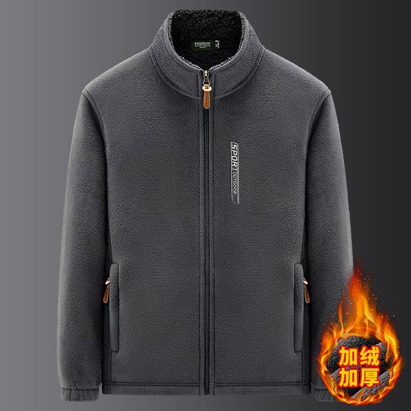 【年终大促】秋冬季男士外套上衣摇粒绒拉链卫衣加绒加厚款zcy 灰色 (加绒款/下滑选尺码) 3XL (适合135-155斤)