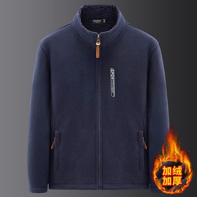 【年终大促】秋冬季男士外套上衣摇粒绒拉链卫衣加绒加厚款zcy 深蓝色 (加绒款/下滑选尺码) 4XL (适合155-175斤)
