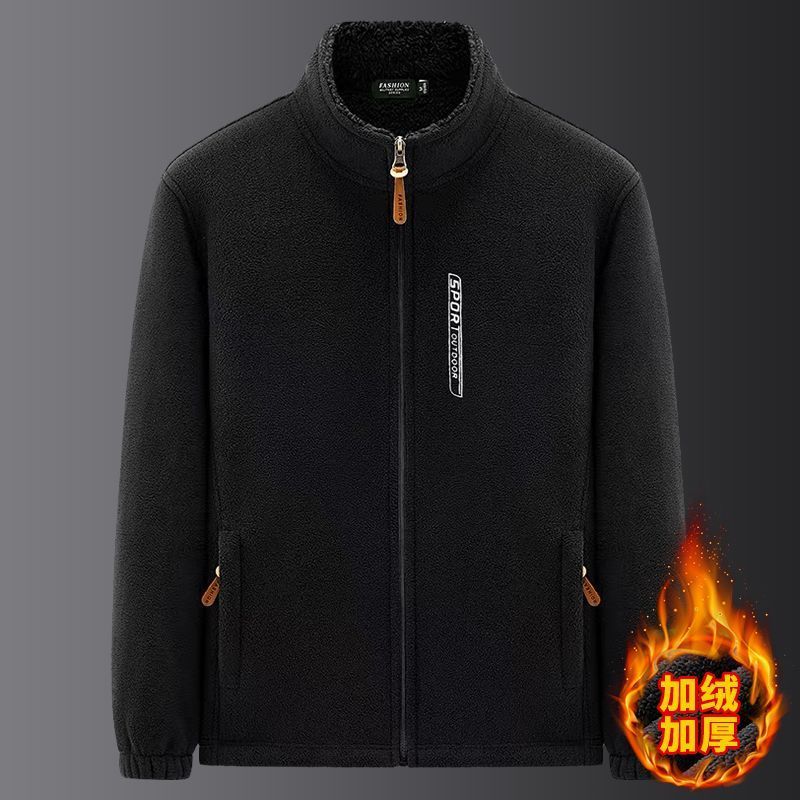 【年终大促】秋冬季男士外套上衣摇粒绒拉链卫衣加绒加厚款zcy 黑色 (加绒款/下滑选尺码) 3XL (适合135-155斤)