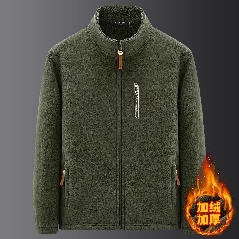 【年终大促】秋冬季男士外套上衣摇粒绒拉链卫衣加绒加厚款zcy 军绿色 (加绒款/下滑选尺码) 3XL (适合135-155斤)