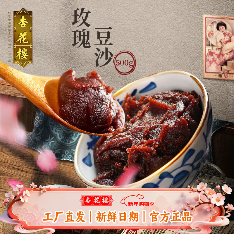 杏花楼中华老字号上海玫瑰红豆沙馅料袋装500g青团汤圆包子烘培糕点原料 【经济2袋】玫瑰豆沙馅料500g*2