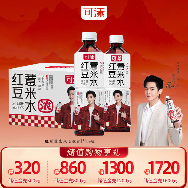 可漾红豆薏米水530ml*15瓶 张若昀同款0卡0糖0脂无糖饮料整箱