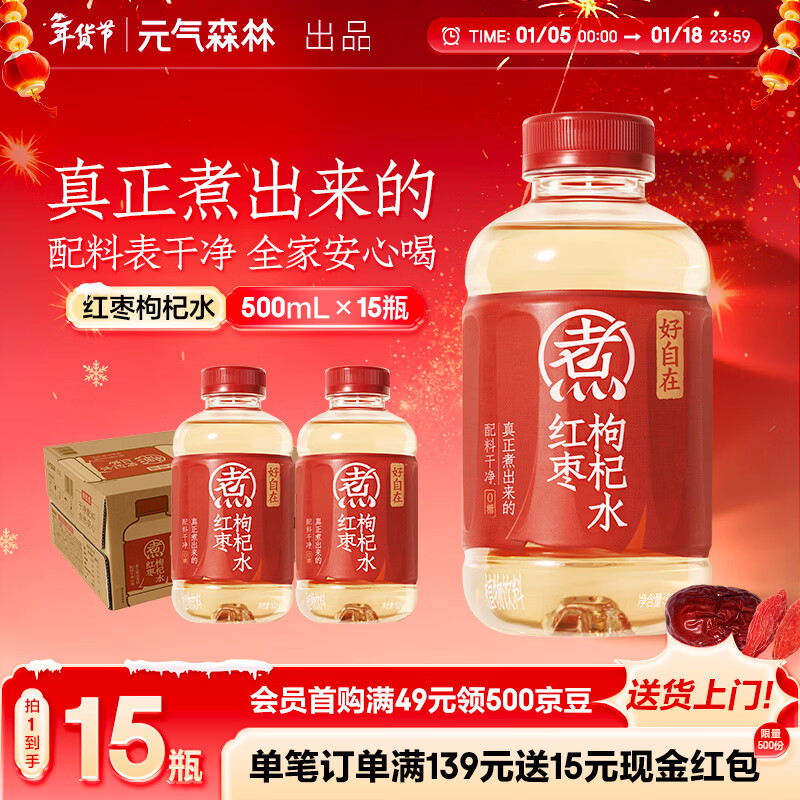 元气森林好自在 红豆薏米水 元气自在水 饮料整箱植物茶饮品 送礼年货 红枣枸杞水500mL*15瓶