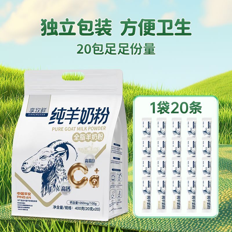 享牧鲜纯羊奶粉400g青年儿童女士中老年无蔗糖全脂羊奶20g*20条 袋装纯羊奶粉 400g*2袋装纯羊奶粉