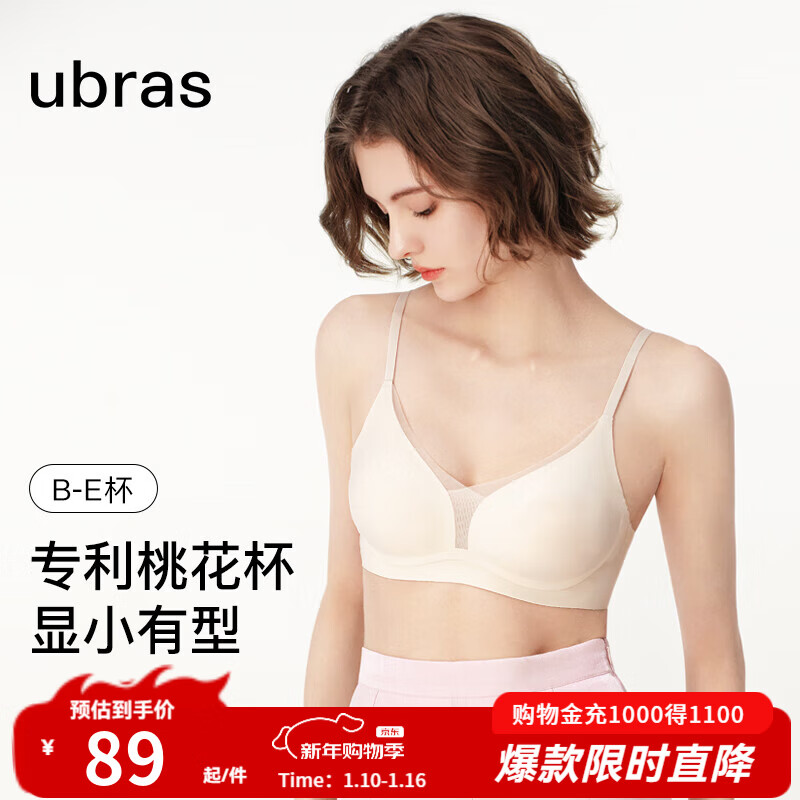 ubras虞书欣同款夹心软支撑光面细肩带文胸女士内衣女背勾款燕麦奶色M