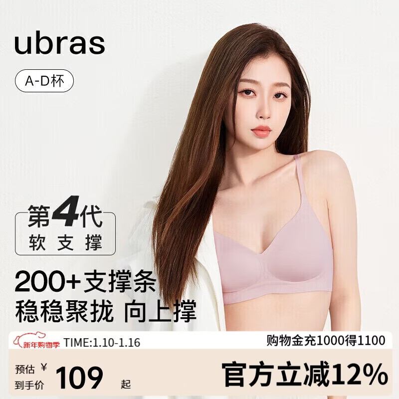 ubras虞书欣同款夹心软支撑光面细肩带文胸女士内衣女背勾款燕麦奶色L