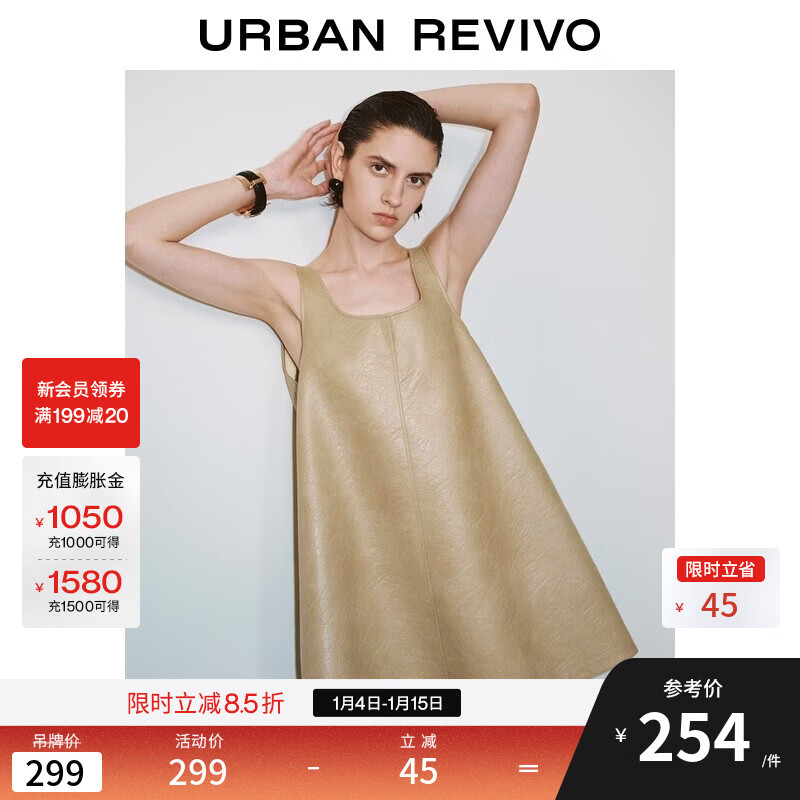 UR2025秋季新款女装摩登气质PU背心式A字连衣裙UWG750212+ 卡其 S