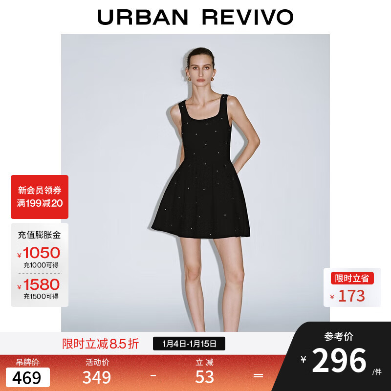 UR2025秋季新款女装法式钻饰背心式修身针织连衣裙UWG950197 黑色 (偏短) S