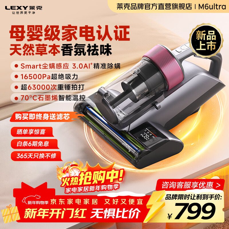 莱克(LEXY)M6 Ultra除螨仪【母婴级】大吸力吸尘除螨石墨烯净螨深层杀菌除湿除螨一体机