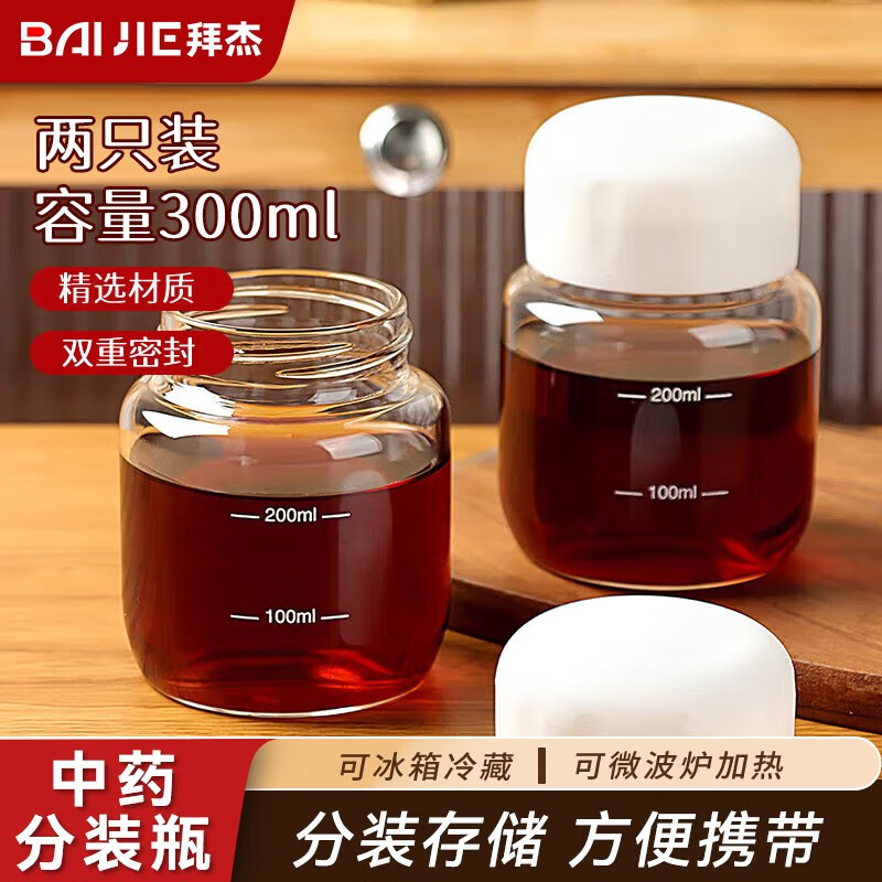 拜杰中药分装瓶可加热装中药杯中药瓶牛奶燕窝分装瓶密封罐300ml*2
