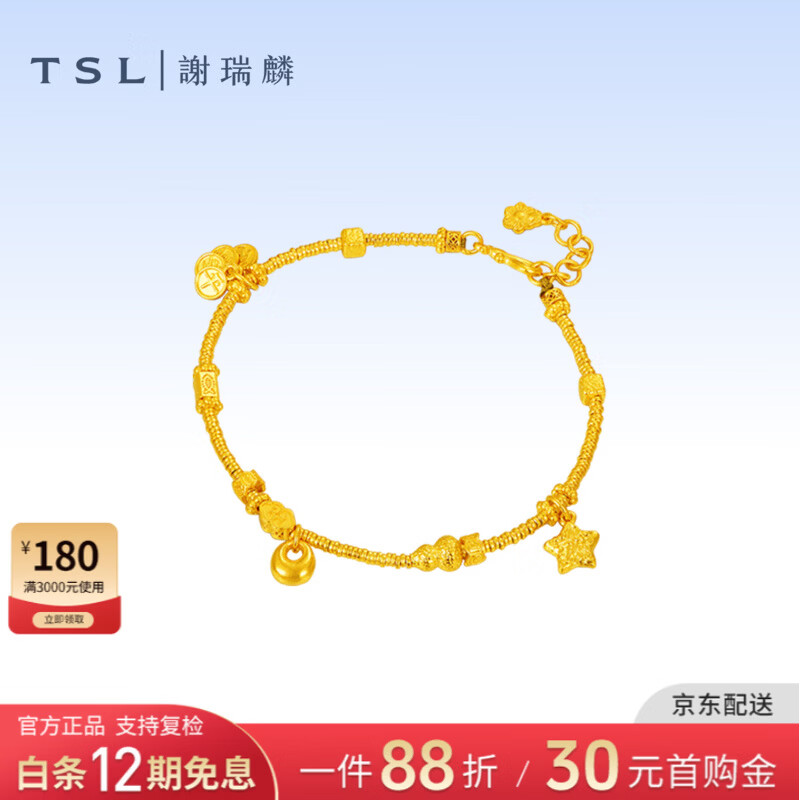 谢瑞麟(TSL)新年礼物马上有福黄金手链珐琅5D硬金工艺手绳手饰XQ596 XQ596-马上有福