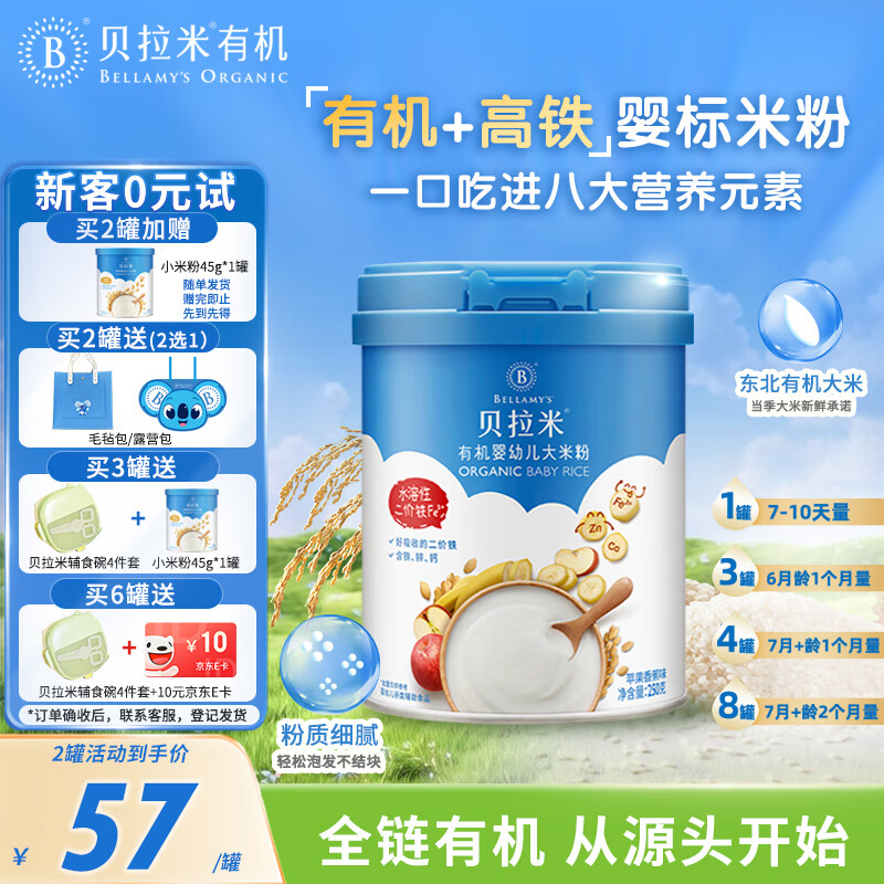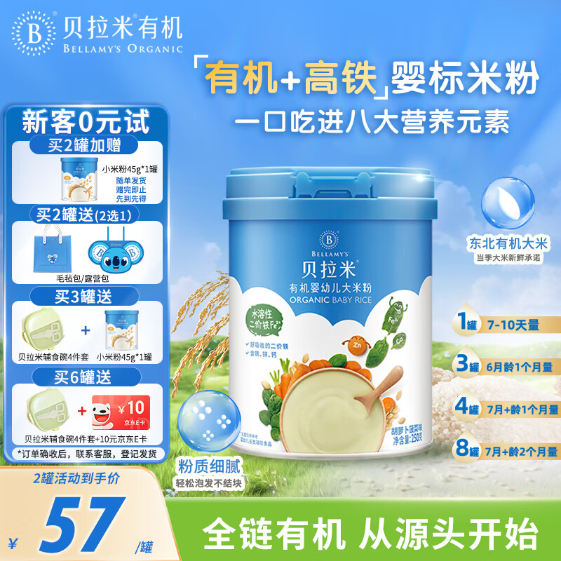 贝拉米(Bellamy's)婴幼儿高铁有机米粉原味尝鲜装45g 水溶性二价铁6月+