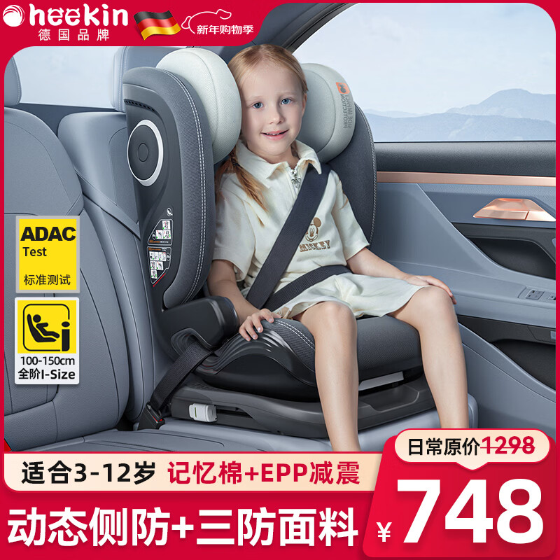 Heekin贝拉-儿童安全座椅3-12岁汽车用大童便捷式宝宝增高垫isofix接口 贝拉-太空灰【3-12岁适用】