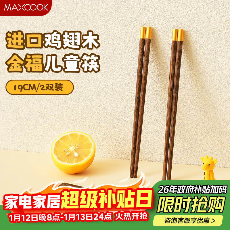 美厨(MAXCOOK)筷子木筷 儿童筷分色筷天然家用鸡翅木筷 金福圆筷子2双MCK8876