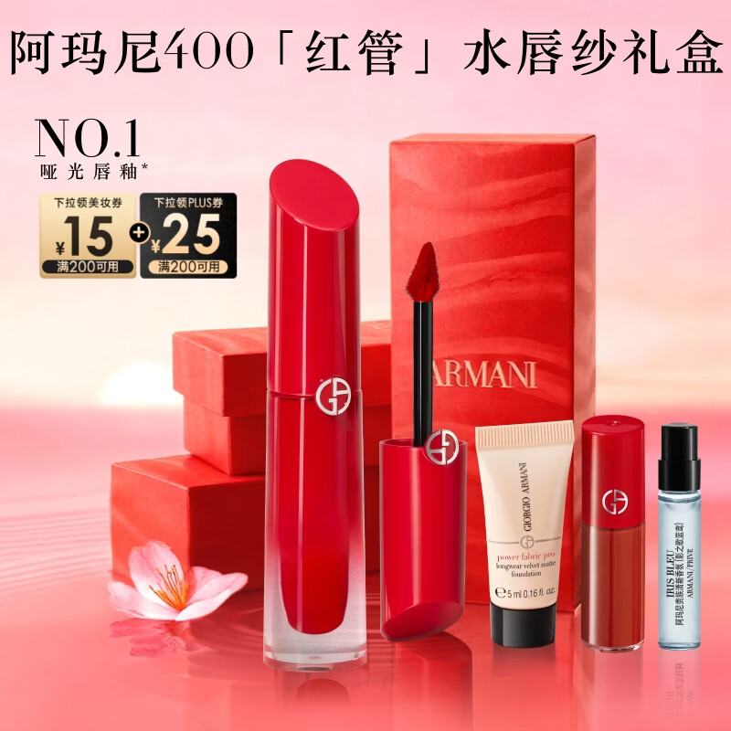 阿玛尼红管水唇纱唇釉#400绝对正红素颜显白口红不沾杯润唇膏新年礼物