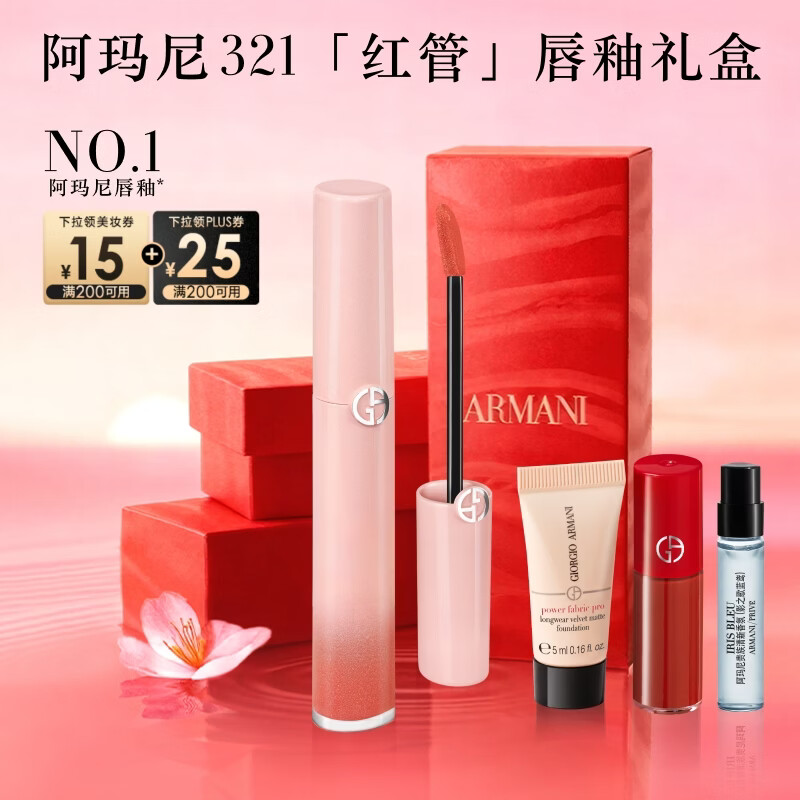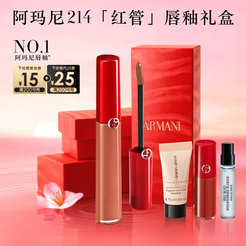 阿玛尼唇釉经典红管双支礼盒 #405+#214素颜口红润唇膏新年礼物