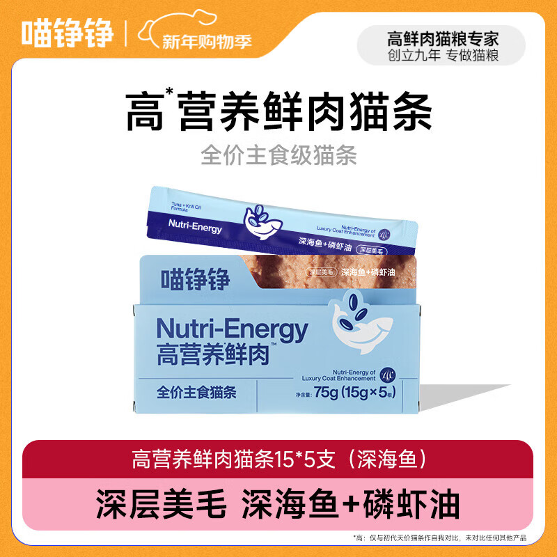 喵铮铮主食猫条湿粮高营养鲜肉猫零食成猫幼猫妙鲜包5支试吃装 高营养鲜肉猫条15g*5支(深层美毛)
