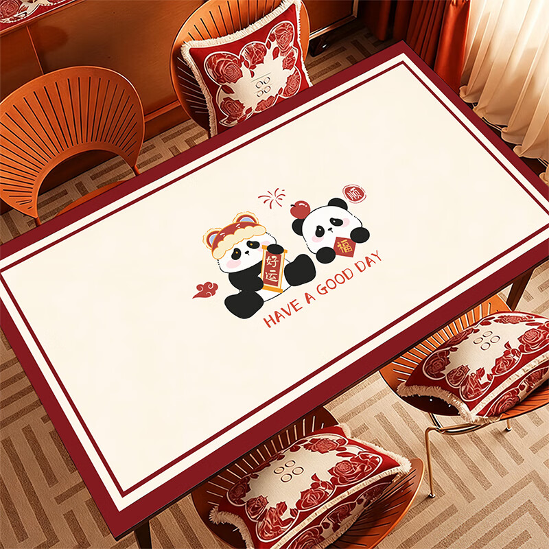 无印良品2026新年春节餐桌垫防水防油免洗桌布过年红色茶几桌垫桌面保护垫 熊猫贺岁 定制下单联系客服